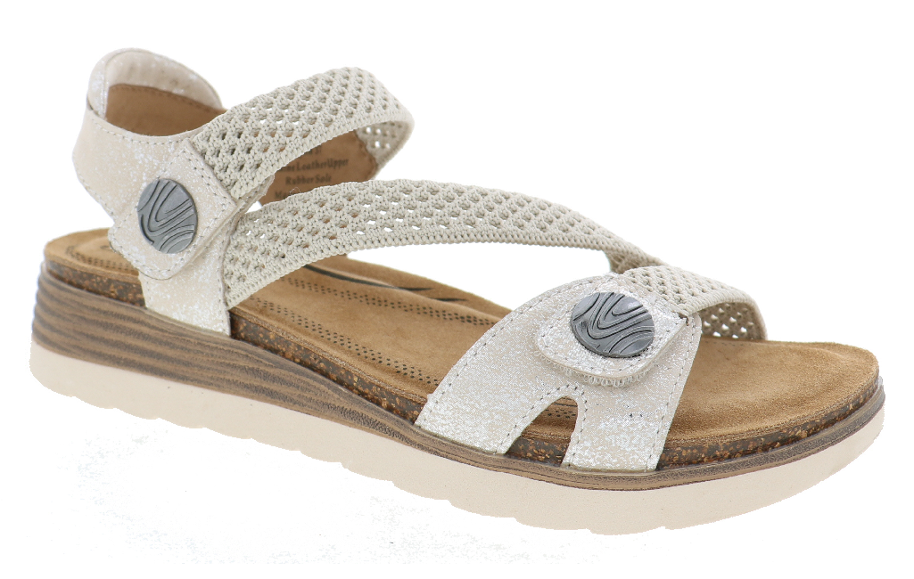 Add a little flair to your adjustable comfort with Bella by Biza Shoes. Featuring a stylish laser cut design and unique metal ornament details, this fully adjustable dual Velcro strap walking sandal gives you a personalized fit every time.