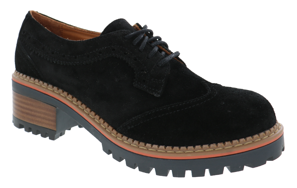 The Biza Wendy is a lace-up loafer that seamlessly combines timeless vintage appeal with daily wearability. Made from high-quality suede leather, this women's shoe showcases traditional wingtip accents and a streamlined lace-up design for a refined yet spirited appearance. Its fully leather-lined interior ensures a comfortable fit, while the shock-absorbing rubber sole and sturdy lug tread deliver reliable support throughout your day.
