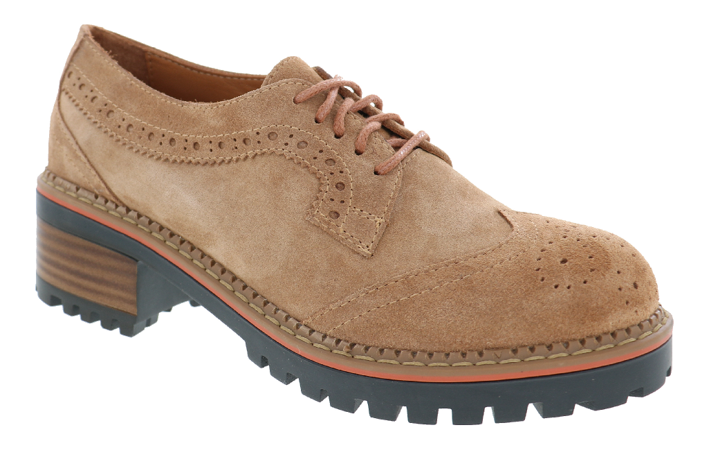 The Biza Wendy is a lace-up loafer that seamlessly combines timeless vintage appeal with daily wearability. Made from high-quality suede leather, this women's shoe showcases traditional wingtip accents and a streamlined lace-up design for a refined yet spirited appearance. Its fully leather-lined interior ensures a comfortable fit, while the shock-absorbing rubber sole and sturdy lug tread deliver reliable support throughout your day.